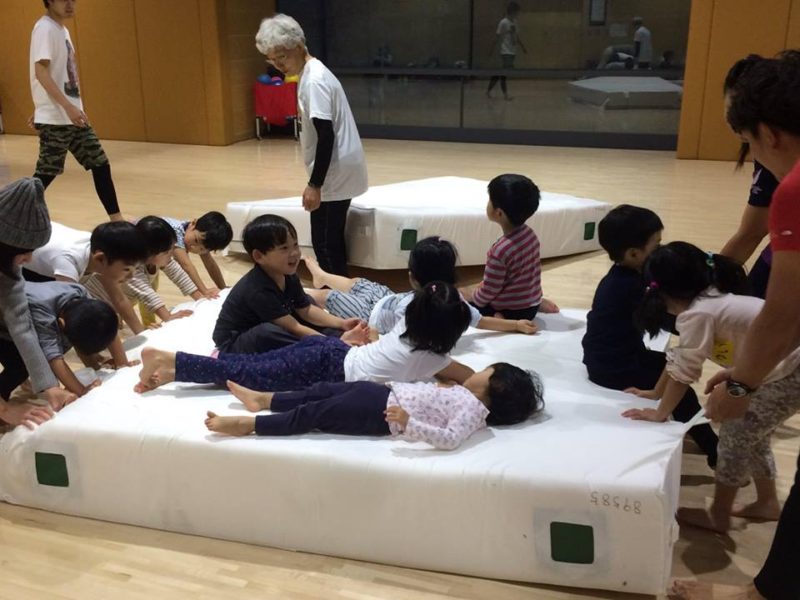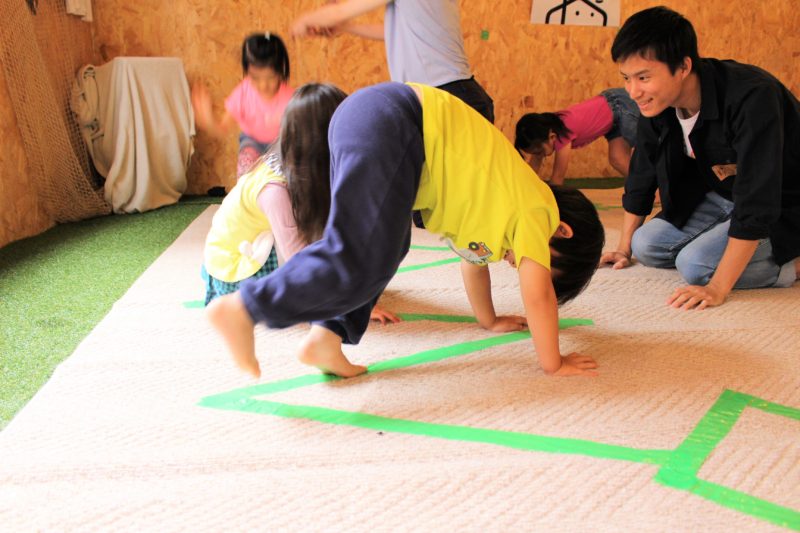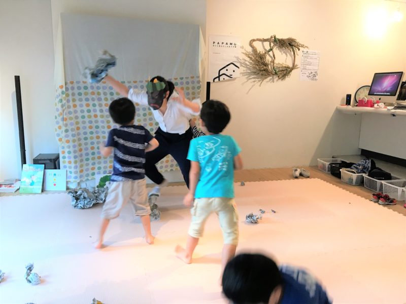 音楽を使った鬼ごっこ!音がゆっくりになったらみんなの動きもゆっくり、音が止まったらみんなもストップ!?うまくできるかな?