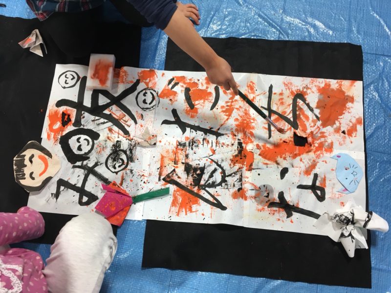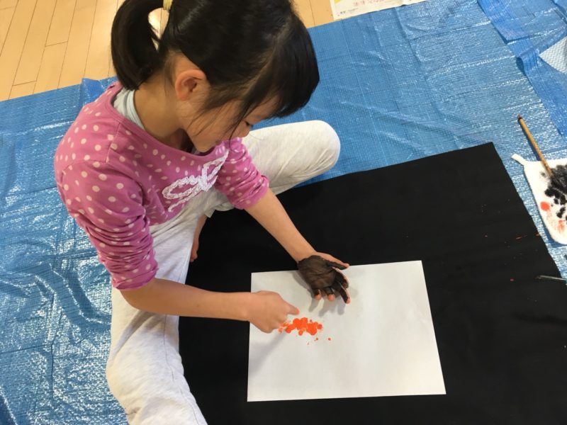 墨を使って絵を描こう!筆を使ったり手で描いてみたり!自由に楽しんでね!