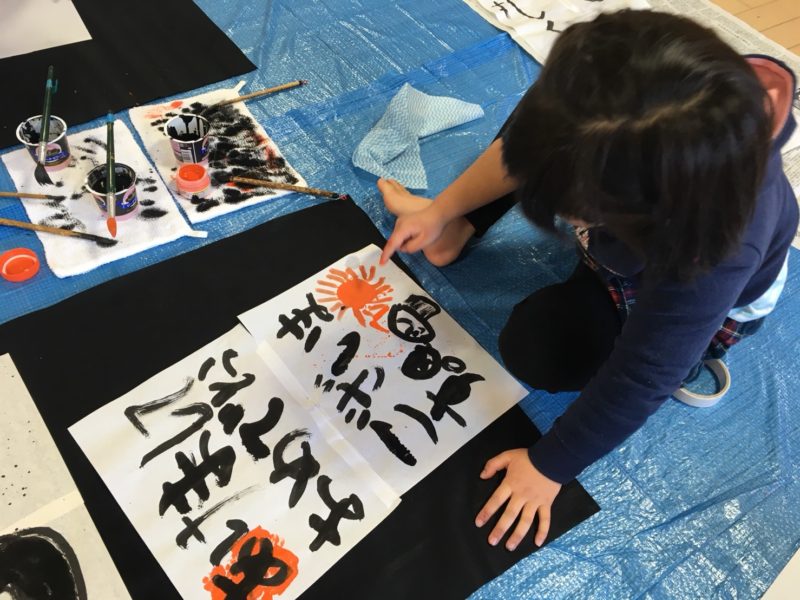 黒と赤の墨でみんななどんな作品を作るかな?楽しみだね!