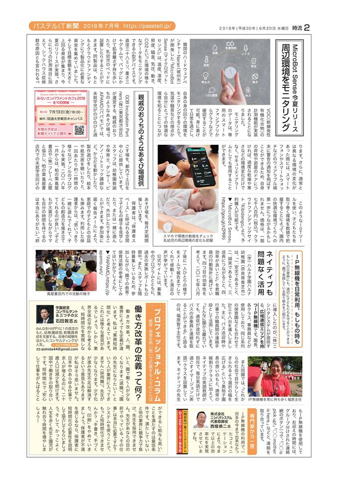 2018年6月20日付の パステルIT新聞の2018年7月号に掲載されました