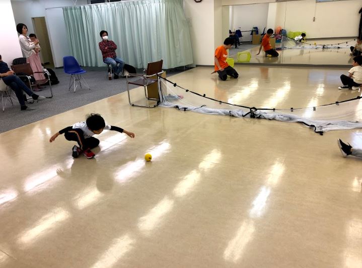 コロコロ転がるボールを手のひらラケットで打ち合いました。ボールが自分のところに転がってくるまでにしっかりと返すための姿勢と手の面作りを準備する事に少し苦労していましたね。